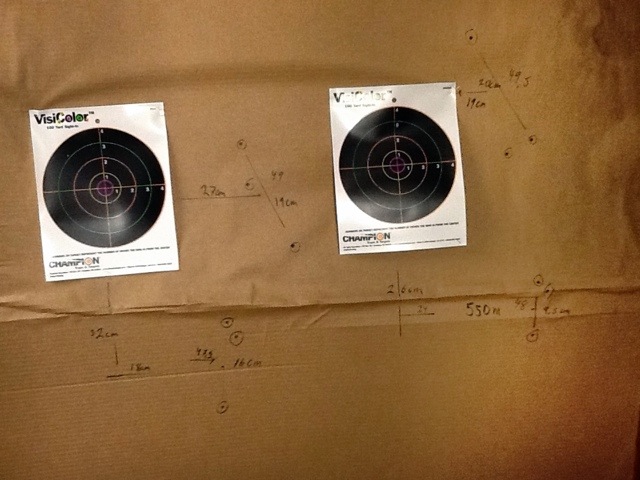 Det verkar som om det finns en trevlig spot runt 48gr, ganska liten vertikal skillnad mellan 47,5gr och 48,5gr på 550 meter. Kommer att genomföra fler tester med dessa laddningar.
