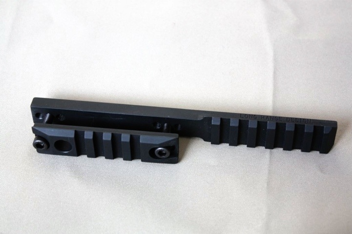 Den långa skenan monteras genom att skenan skruvas fast med medföljande bultar genom den lilla skenan på undersidan. Den lilla skenan har som framgår på bilden även ett Uncle Mikes rembygelfäste.