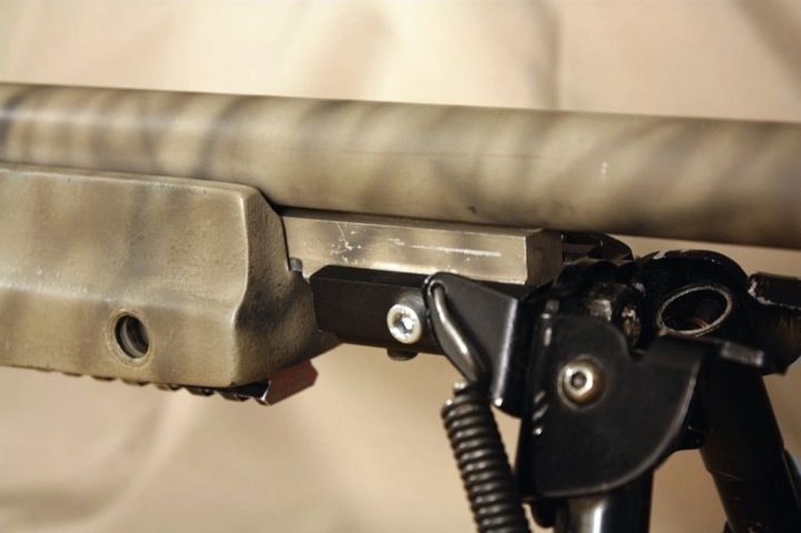 Om ni avser att sätta benstöd på de främre skenan måste stocken vara styv, dvs. så styv att skenan inte flexar upp i pipan vid belastning. Alternativet är att öka avståndet mellan skena och pipa för att möjliggöra att stocken flexar, ungefär som ni ser på bildena nedan.