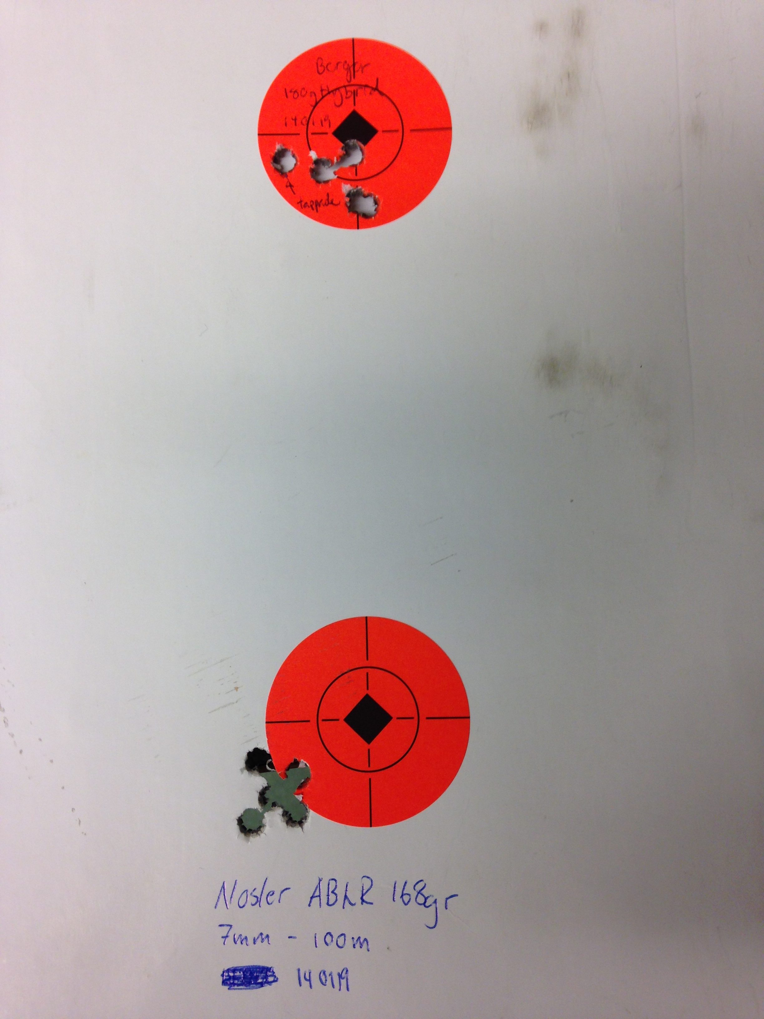 I notice a small increase of noise when shooting 6.5*55 but the noise level felt the same when shooting the 7mm RM. But the best thing about this operation is that my issues with first / second round shift is gone. This is the first 10 rounds thru the suppressor at 100m, it shows 5 rounds 180gr Berger Hybrid (I lost one shot to the left, false recoil management) and 5 rounds 168gr Nosler Accubond Long Range. This CCBS shows that the first round problem is no longer an issue.