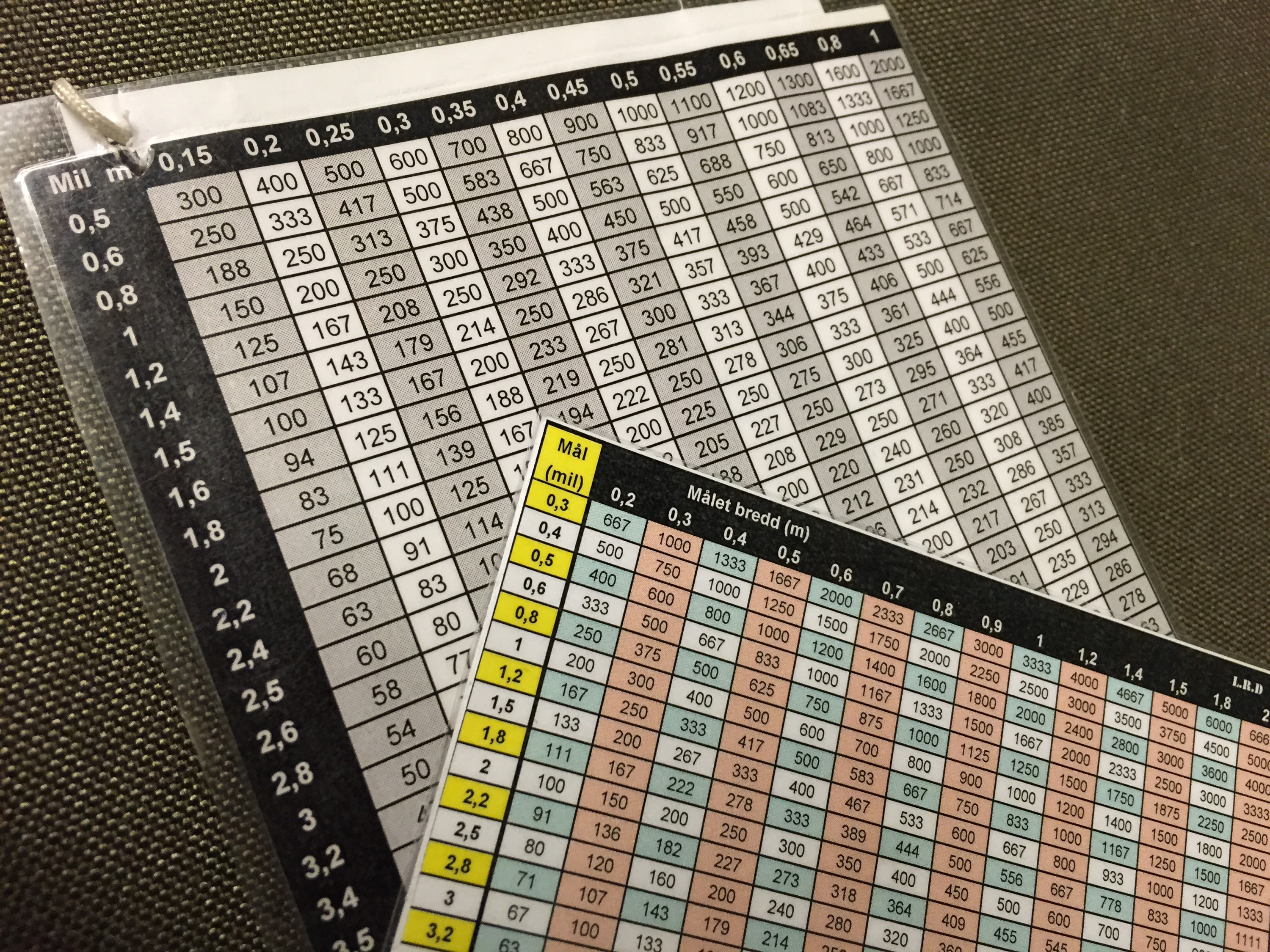 Ett enkelt och bekvämt sätt att träna detta är att sätta upp olika eller lika stora pappersark (som symboliserar vita stålmål) på skjutbanan eller hemma för den delen. Sen behöver du självfallet ett anpassat riktmedel i kikarsiktet för att göra mätningar med och någon typ av avståndstabell.
