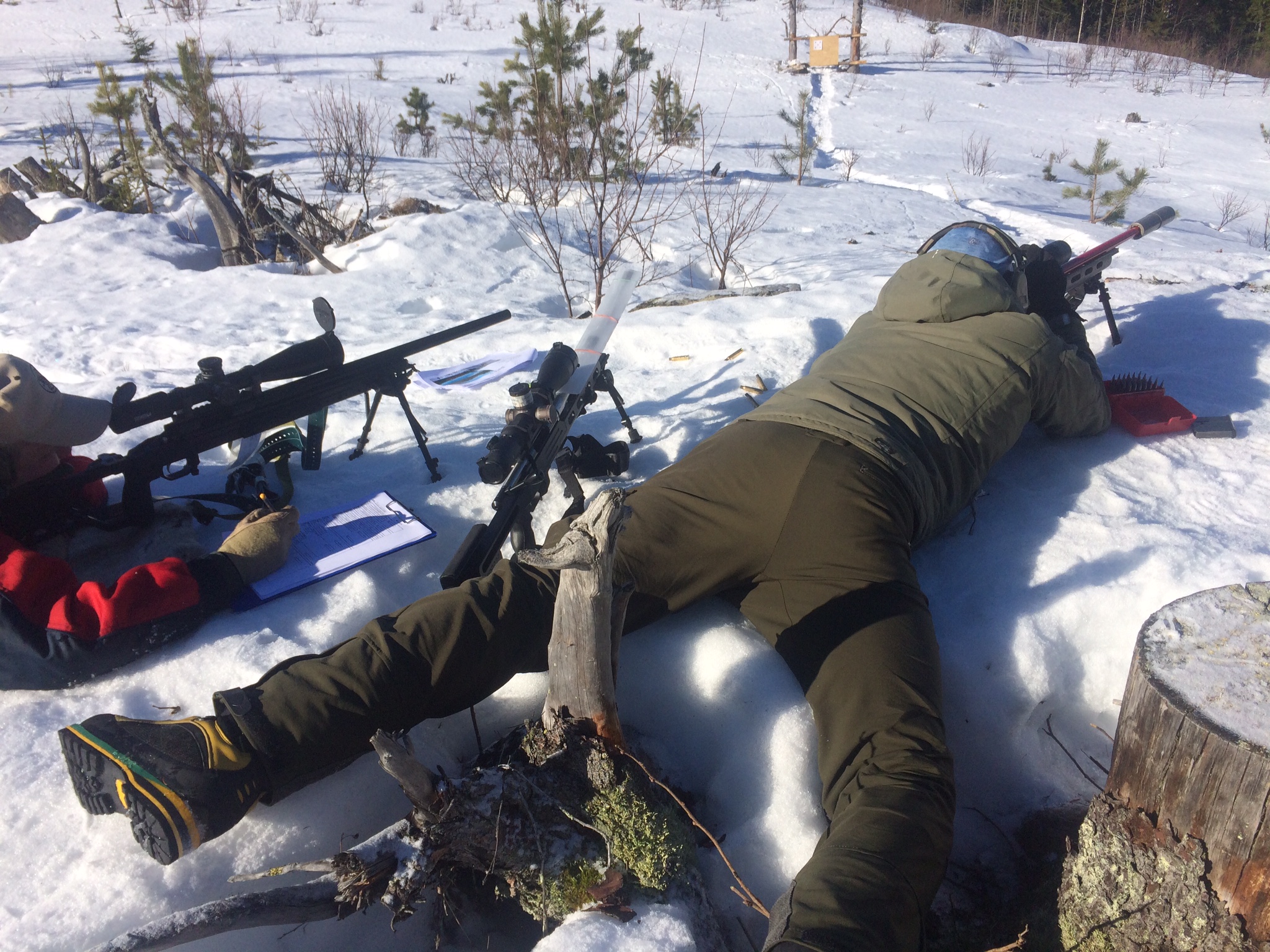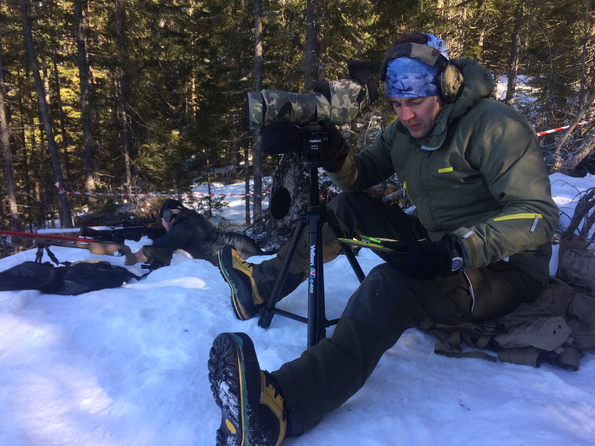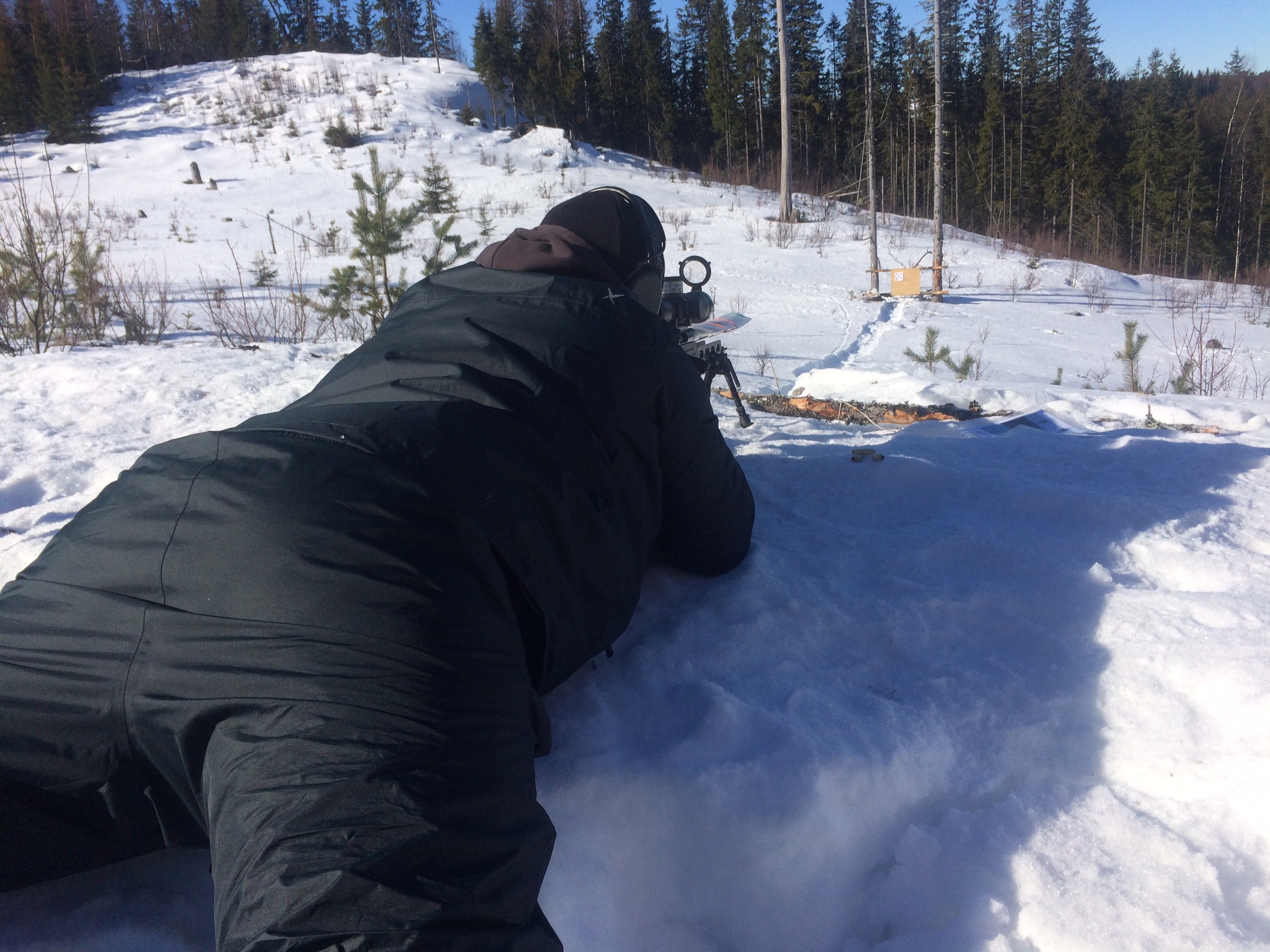 Jag gör mig klar och Emil ropar ut vindkorrektion. Kommandot – ”Spotter på” kommer och jag skickar iväg det första skottet mot målet. Jag ser tracen från kulan genom kikarsiktet och jag hinner tänka – skit innan Emil ropar från sidan -3 mil isch till vänster. Jag inser att vindratten hade snurrat sig mer än ett varv, nu blir det problem. Jag justerar för träffen och gör då misstaget att klicka för rotationen åt fel håll vilket innebär 30 cm åt fel håll på 1000m. Så fortsätter det…men vi lyckas ändå skrapa ihop 8,3 poäng på stationen, något som inte är bra men inte heller sämst.
