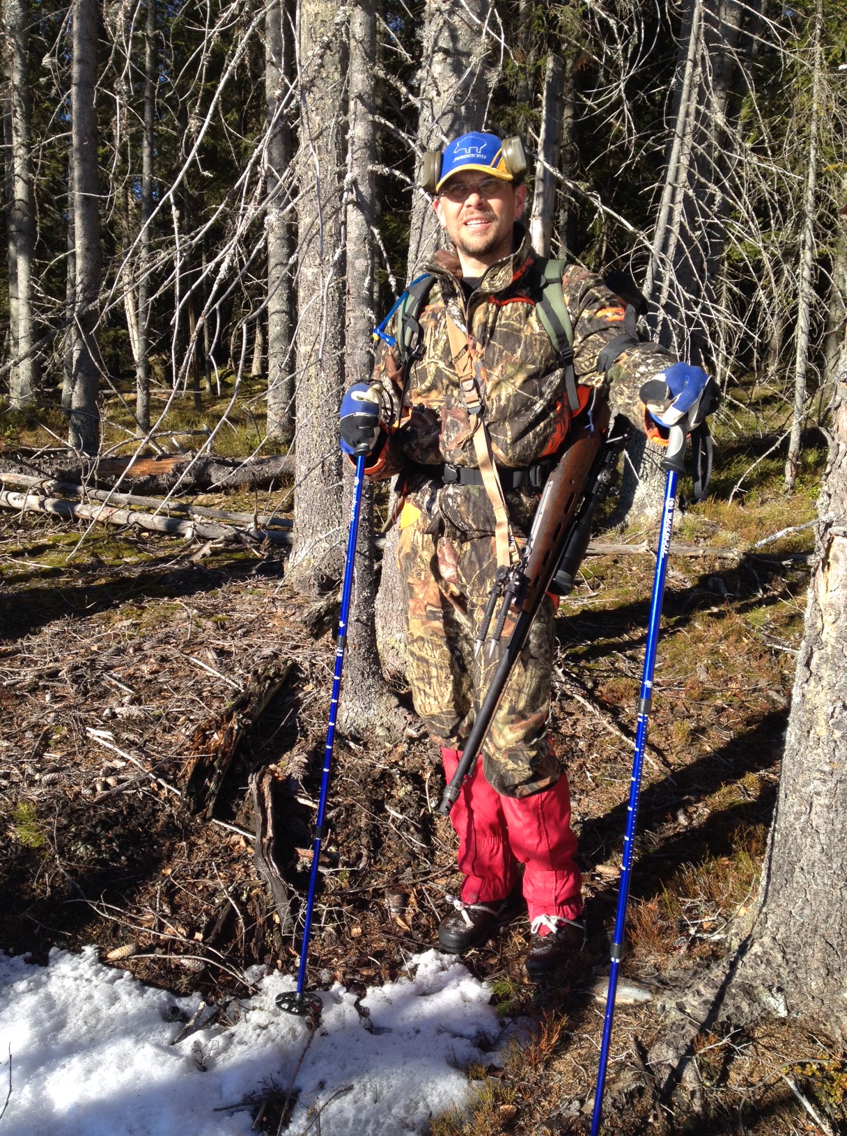 Christer visar erfarenhet och kör med stavar för att minska risken för att halka! Enda som sköt fullt på station 3 – Starkt!