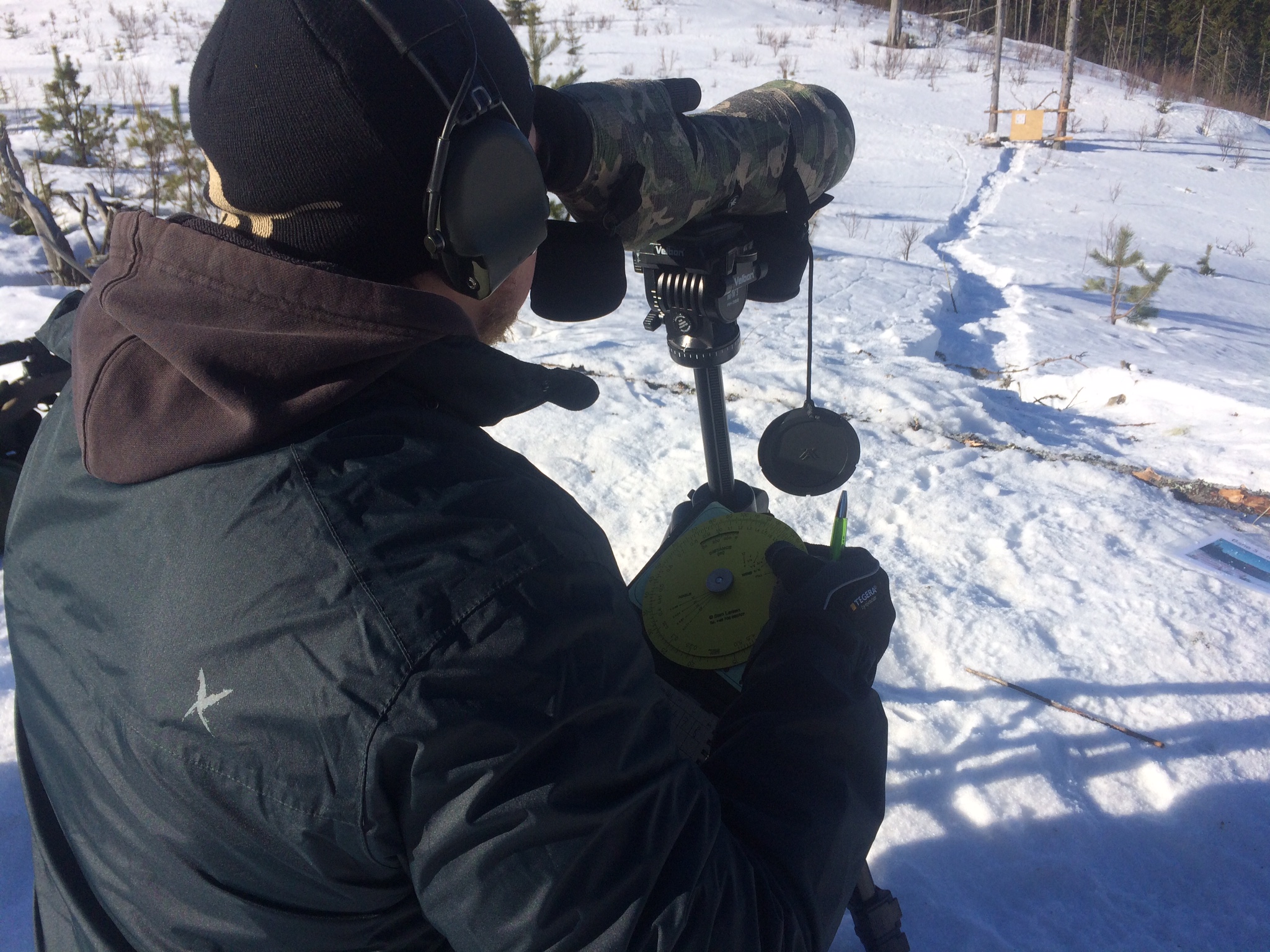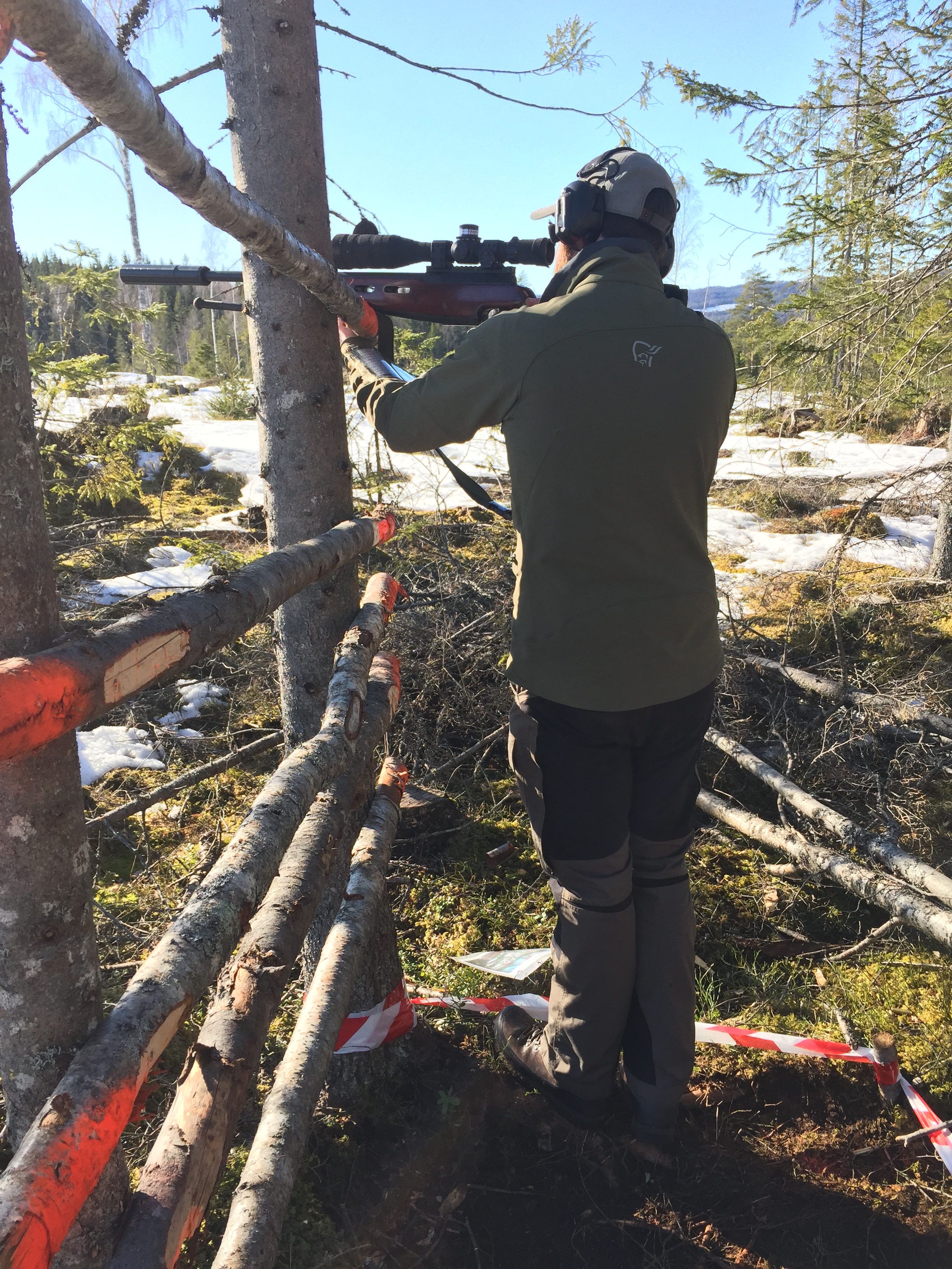Emil gör sig klar för att skjuta på station 6, längsta avstånd vita fältet längst bak mitt i bild på ca 1090m