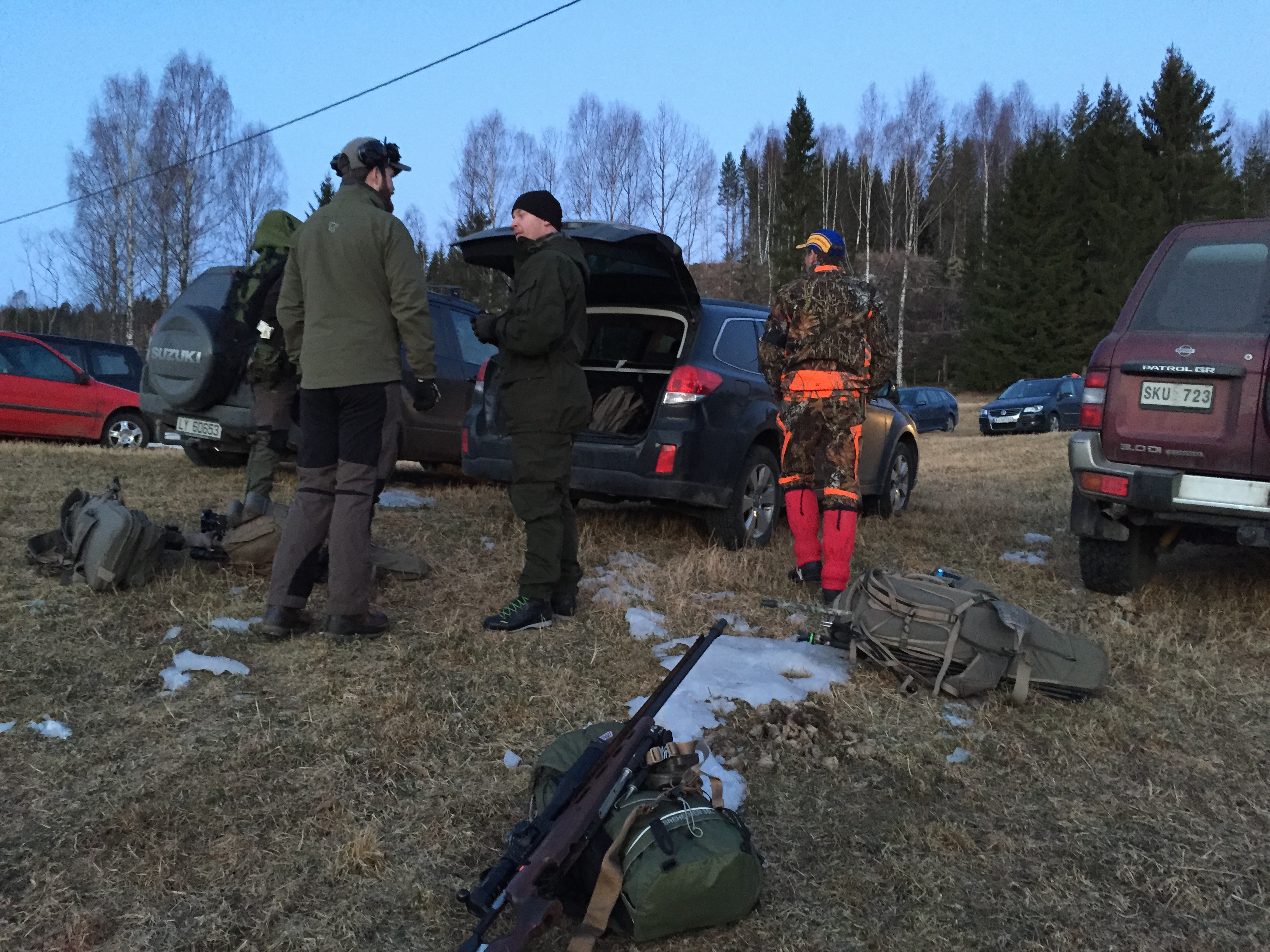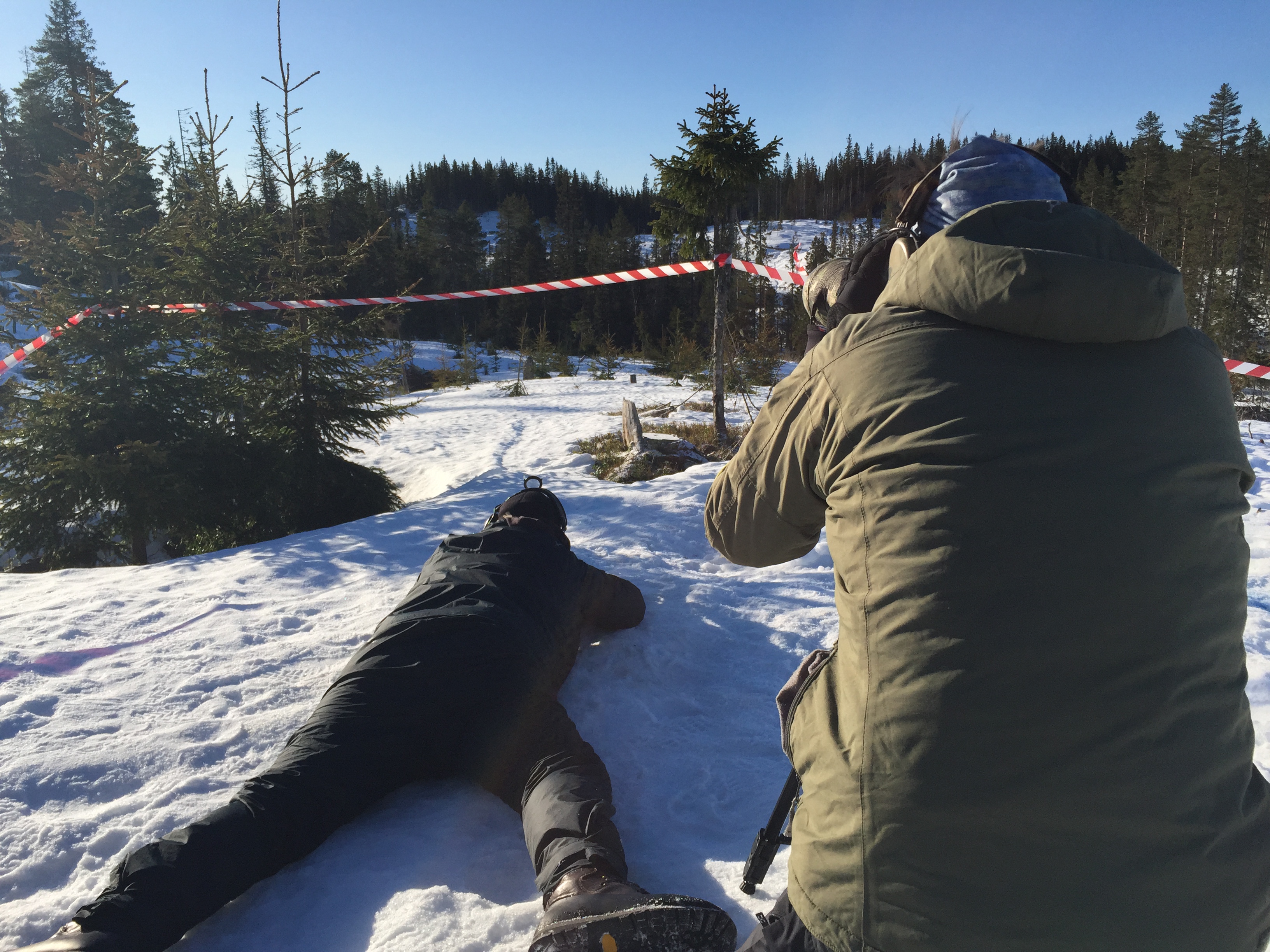 Efter en rätt stadig frukost 05.00 på morgonen hoppade vi in i bilarna och rullade bort till platsen där tävlingen skulle börja. Temperaturmätaren i bilen visar på några minusgrader och vi tittar upp för att upptäcka att himlen är helt utan moln, det kommer att bli en fin dag. Väl på plats och med go prestigelös känsla i luften hälsade tävlingsledningen oss välkomna till NM 2015. Instruktioner för tävlingen och säkerhet föredrogs för oss deltagare och därefter delades vi in i 5 patruller med ca 6-8 skyttar i varje.
