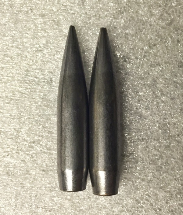 Av de 12 kulorna är dessa två på bilden ovan ytterligheterna. De skiljer i vikt, ogivalmått och boat tail. Enda slutsatsen som vi kan se till detta fenomen är att dessa två kulor är gjorda i två olika verktyg och sedan blandats ihop i en låda som sen utgör en större batch.