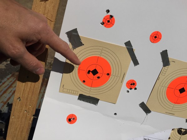 I och med att det blåste bra var det inte läge för precision utan mer färdighetsträning och att få testa siktet i aktion. Övningen startade på 100m och avslutades på ca 30m. Varje omgång skjuter skytten 5 skott mot samma mål på de olika positionerna. I detta fall utgjordes målet utav en 10cm stor orange cirkel klistrat på en luftgevärstavla. Enkelt och tydligt, träff i färgat område – poäng.