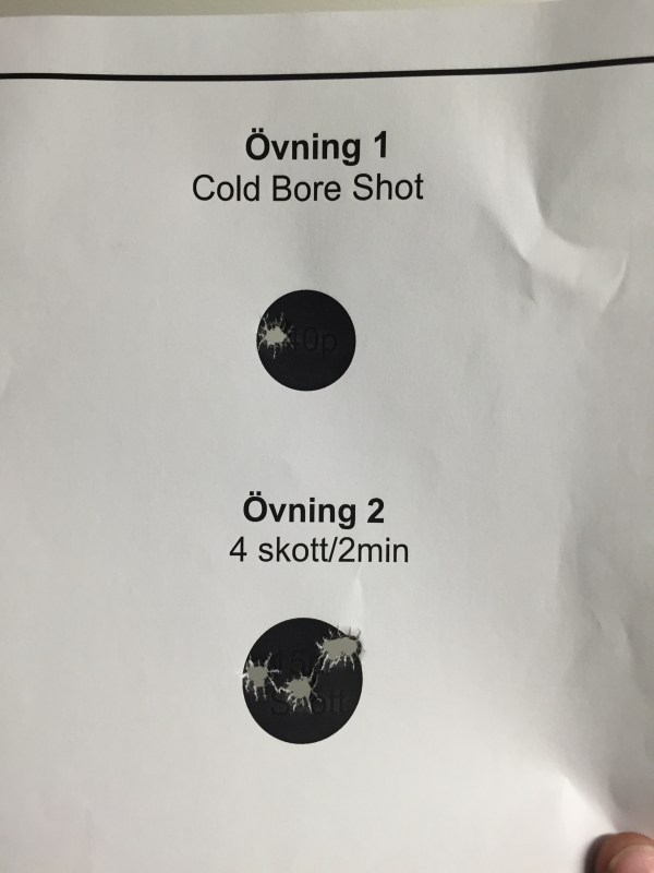 Avslutade med kontrollskott och rengörning av pipan. Därefter tre skott igen med riktigt fin träffbild och ingen skillnad mot innan. Känns gott inför helgens jakt.