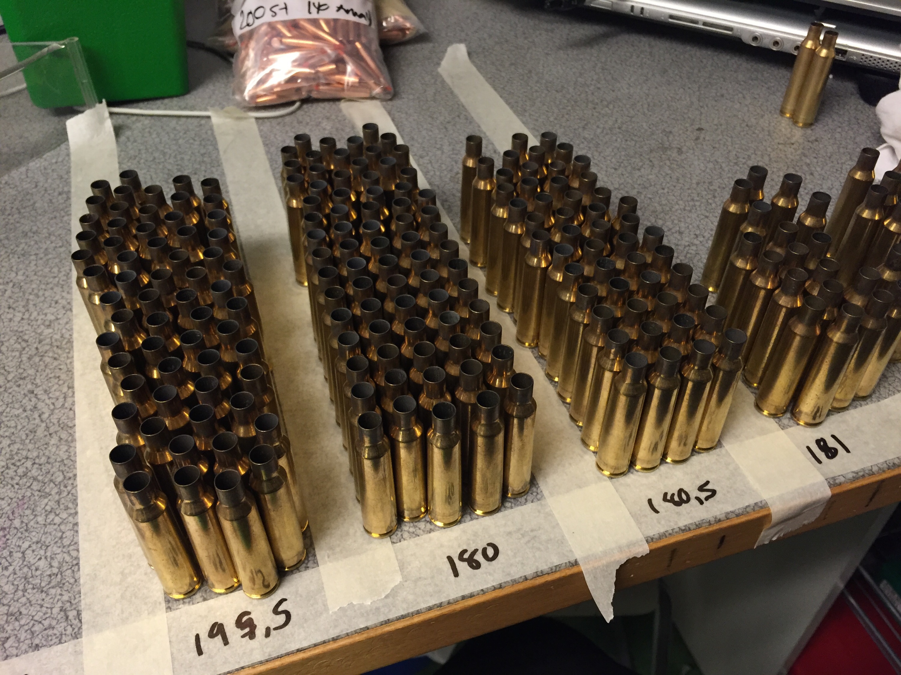 Nu startar arbetet med att jobba fram två batcher med ammo till nya 6.5 Imp pipan. Tänker köra en batch med tävlingspatroner för precision på längre håll och en batch för mer dynamiskt och rörligt skytte där det är ok att tappa både en och två hylsor under en tävling.