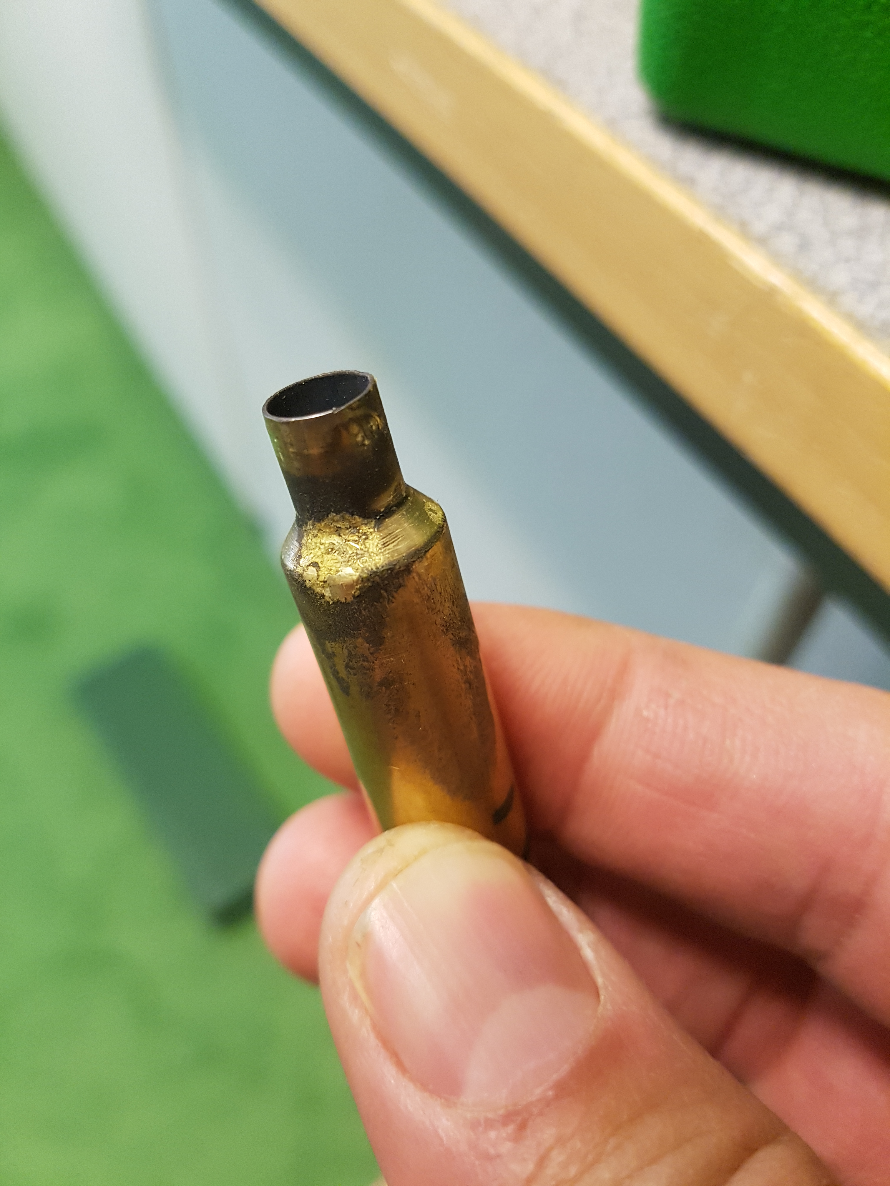 När man skjuter i terräng ska man undvika i möjligaste mån att få in naturen i patronläget 🙂 Själv lyckades jag få in ett lingonblad som tightade till headspace’t något…men det blev träff ändå 🙂