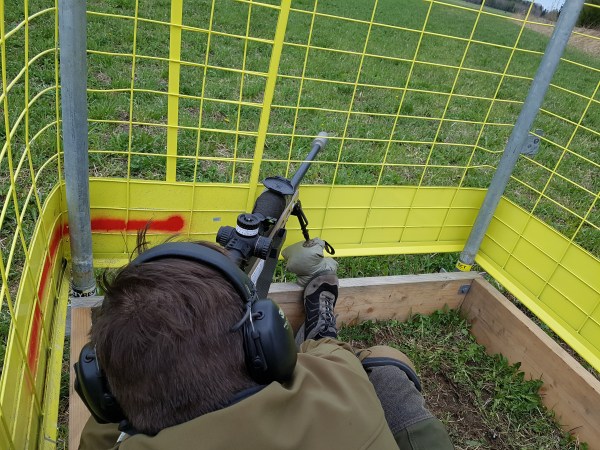 Här ses buren från station 2 övning 4. Här var uppdraget att landa 4st skott på 875m. Dessutom med 2-4m/s och med en maxtid på 1 min från start stående med vapen och magasin i handen. Själv lyckades jag landa 3 av 4 kulor på plåten vilket jag är nöjd över med tanke på mitt strul att komma in i position. Blev en klart improviserad position när inte min plan gick att genomföra…