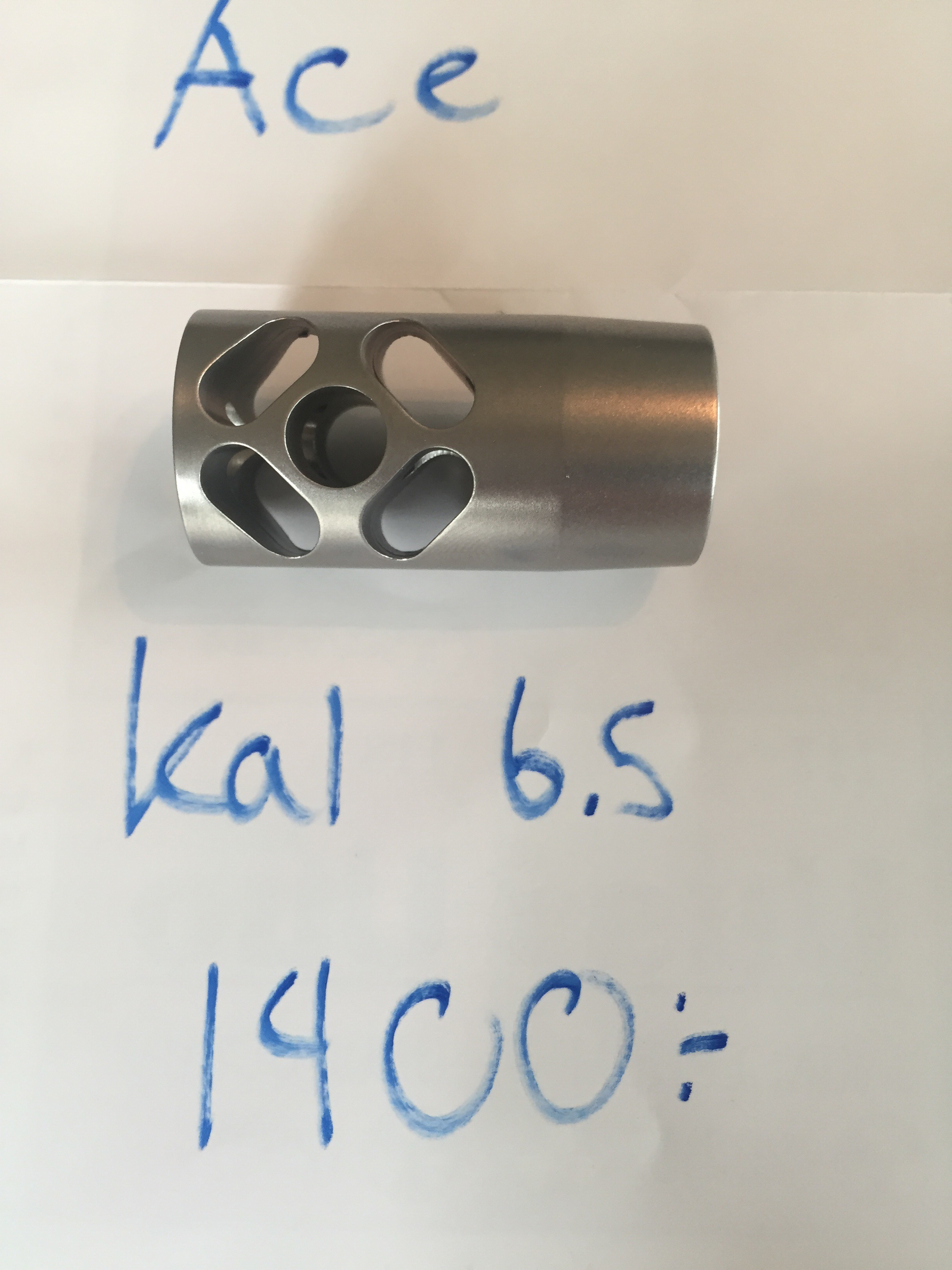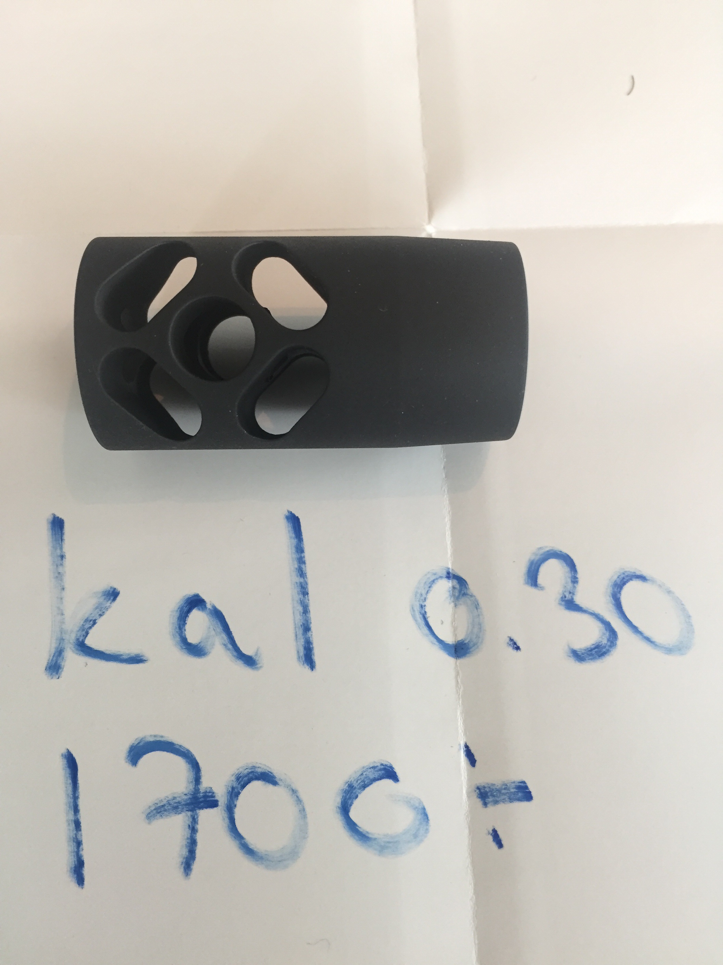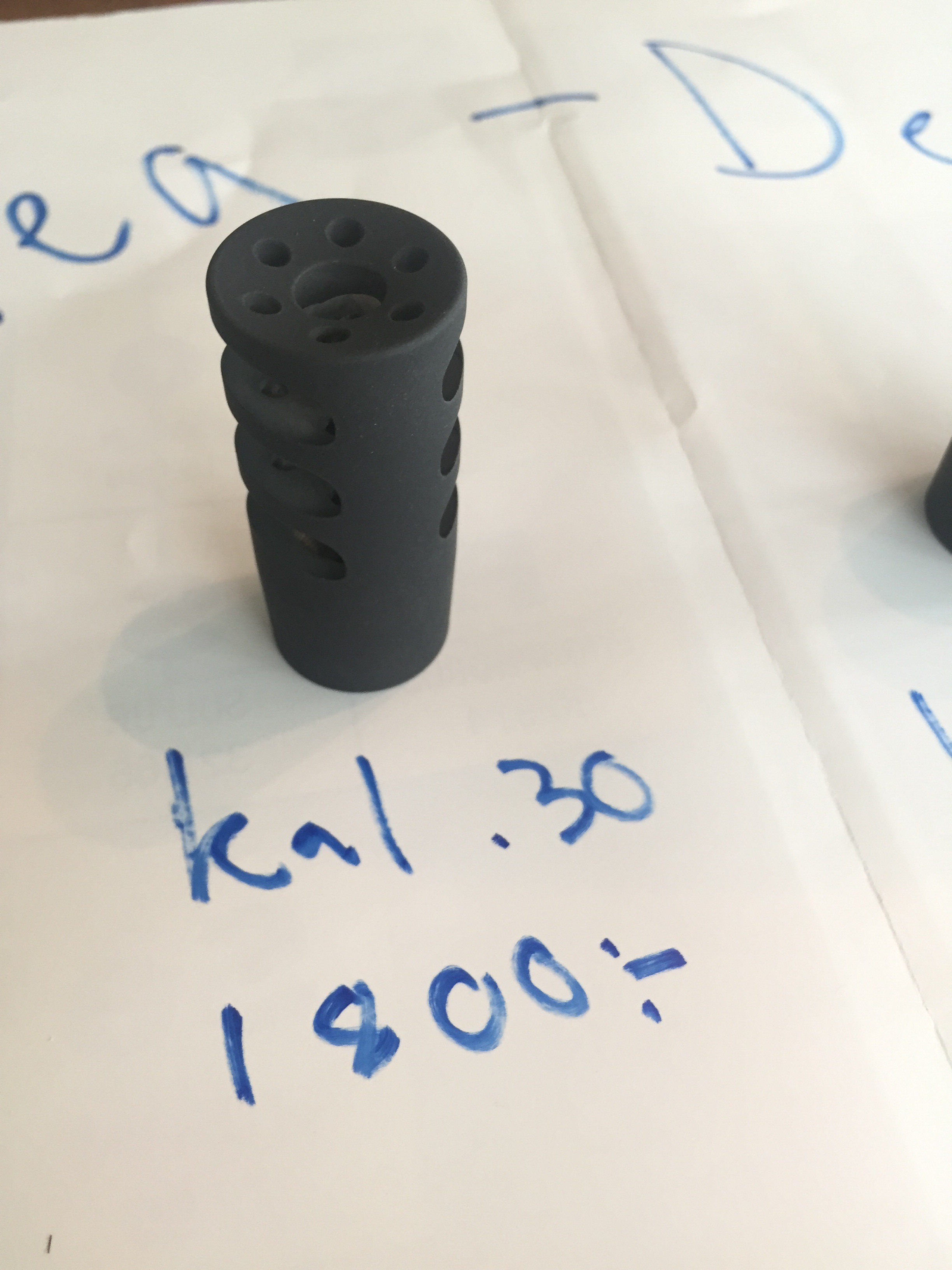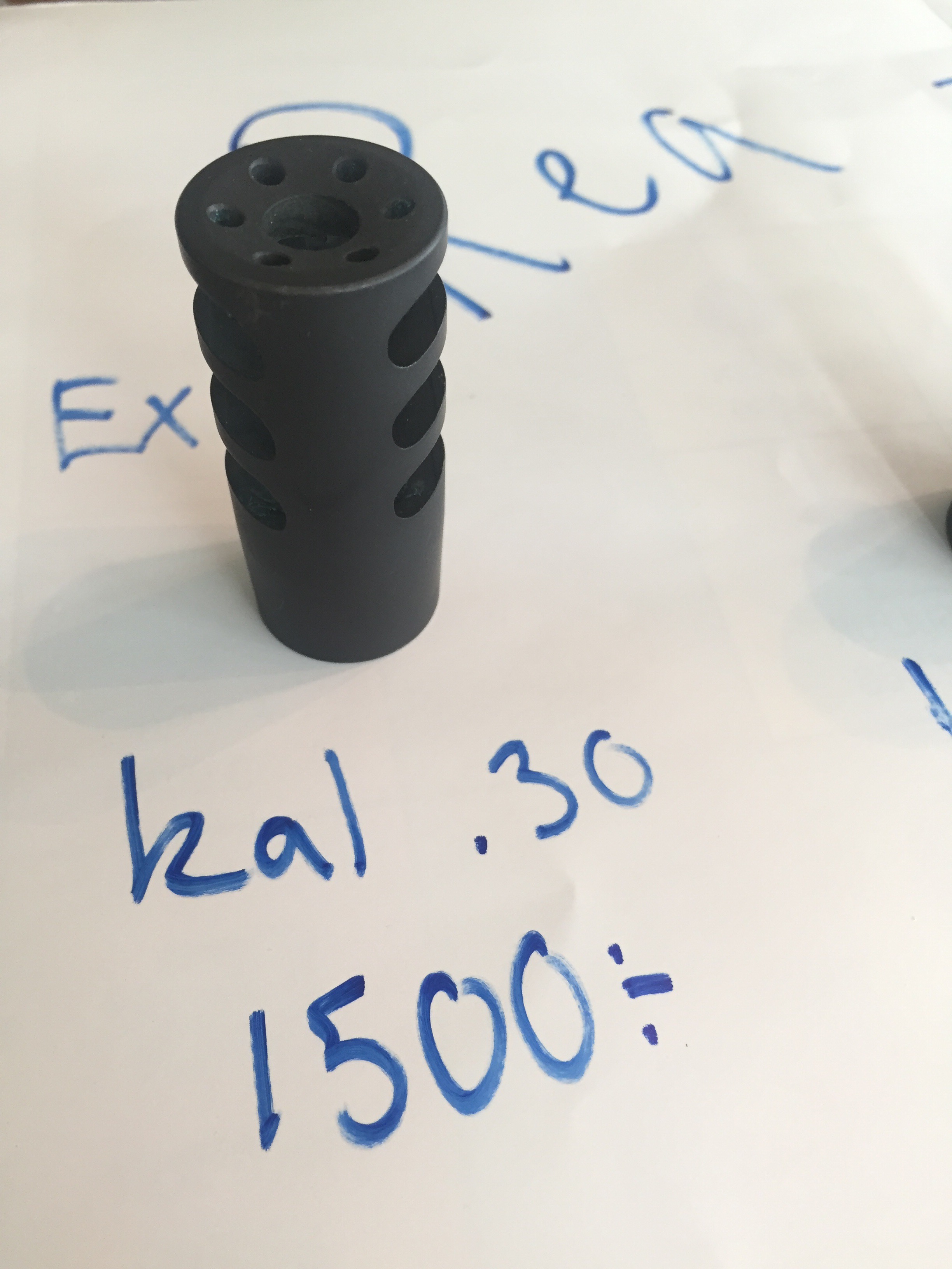 Här är vår senaste skapelse till höger, en minimalistisk rekylbroms anpassad för jakt som funkar till det mesta.